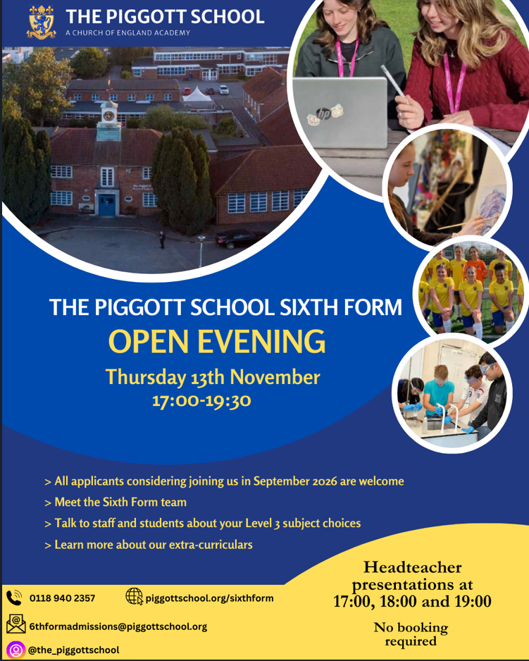 For more information about this course please email Mrs G Swanborough to SwanboroughG@piggottschool.org