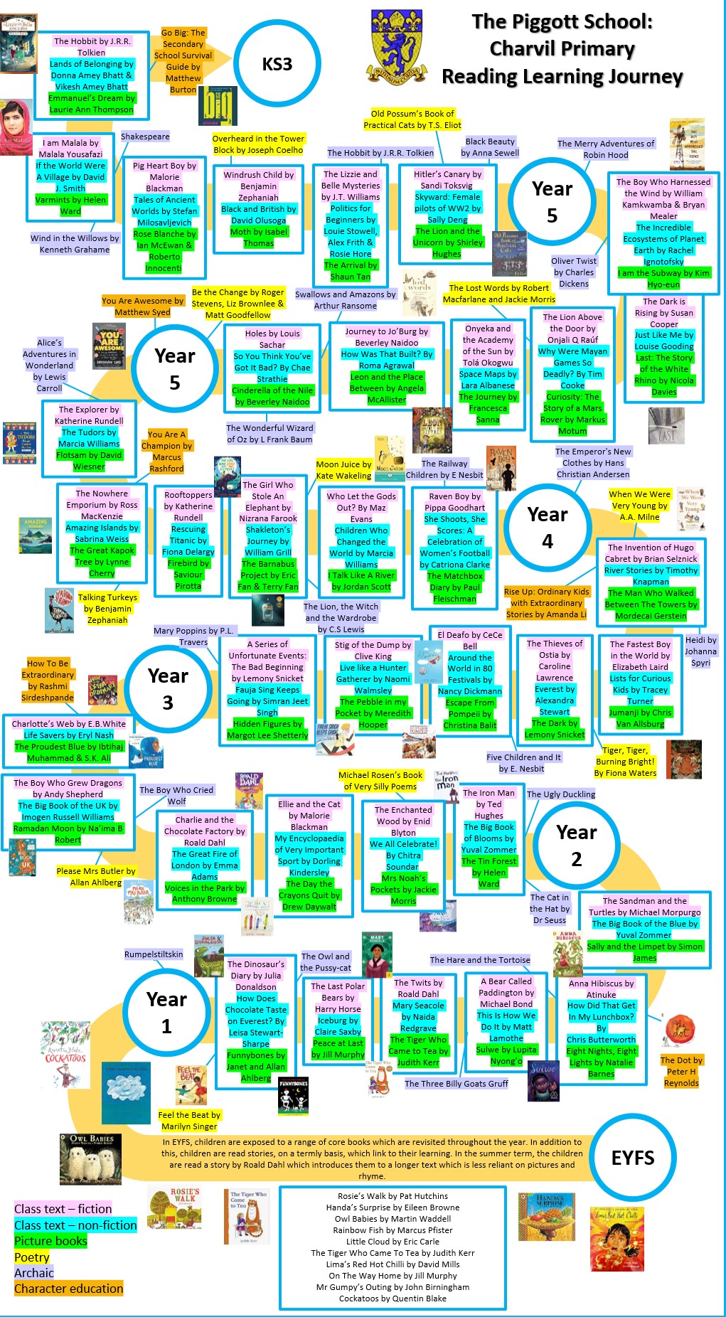 Our learning journey illustrates the rich variety of texts that our children are exposed to as they move through the school.