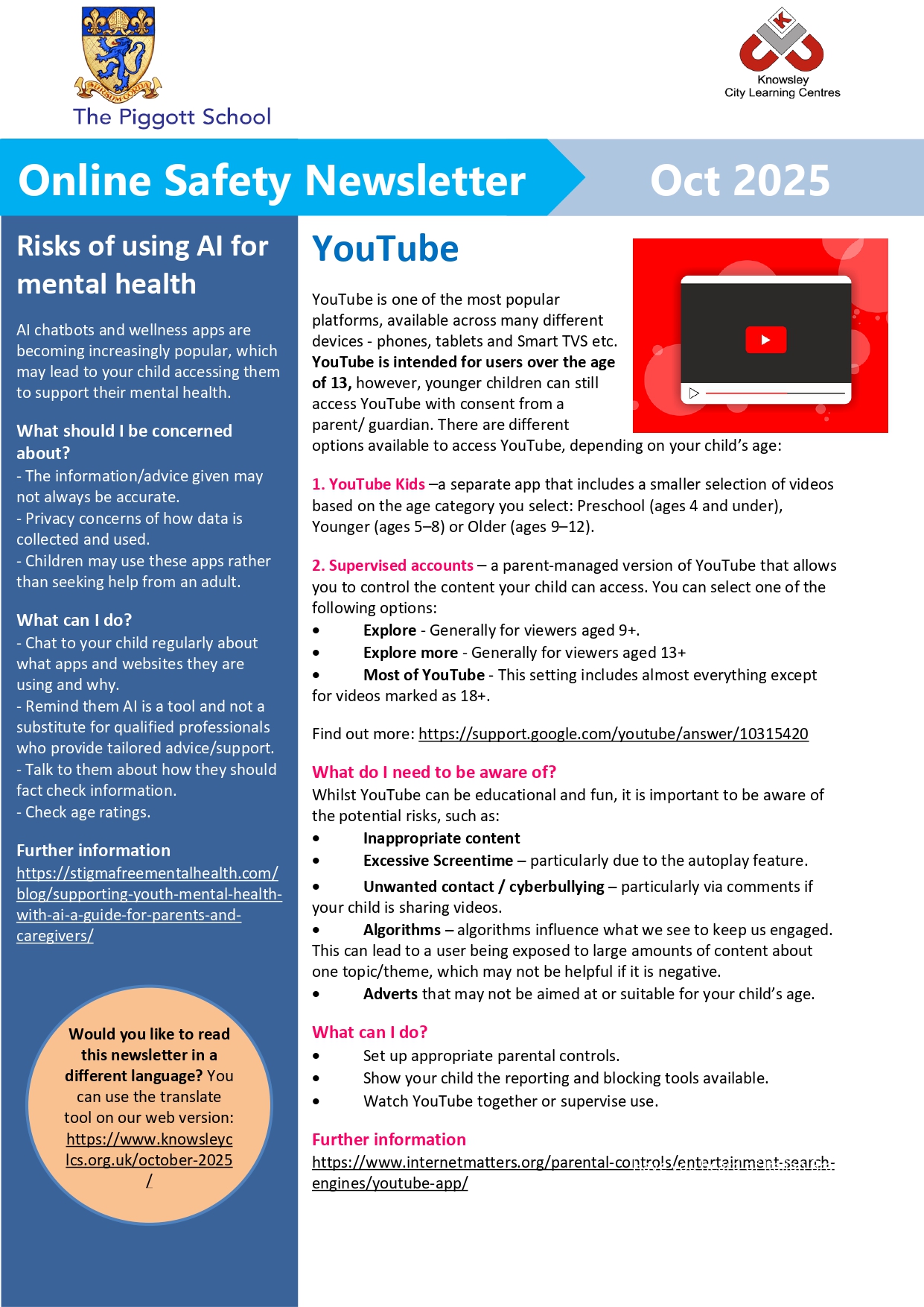 have a consistent experience of Online Safety education. We aim to ensure that all students from Year 7 to Year 13 receive embedded opportunities within the curriculum and pastoral tutor time to learn how to stay safe online, particularly during the current situation where young people are spending even more time online. New technologies bring exciting learning opportunities, but careful management and education is needed to ensure that everyone is safe in our digital world.